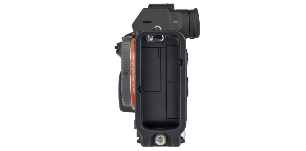 Lコンポーネント(縦プレート)は前後方向に5〜6mmスライドできるので、カメラの端子カバーに干渉しないよう配置できます。