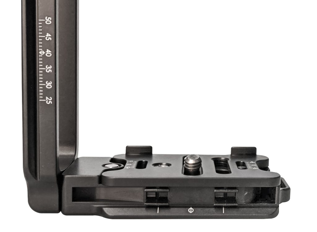 縦構図でレリーズケーブルなどを使用する際はLコンポーネントをスライドさせて空間を作ることができます。
