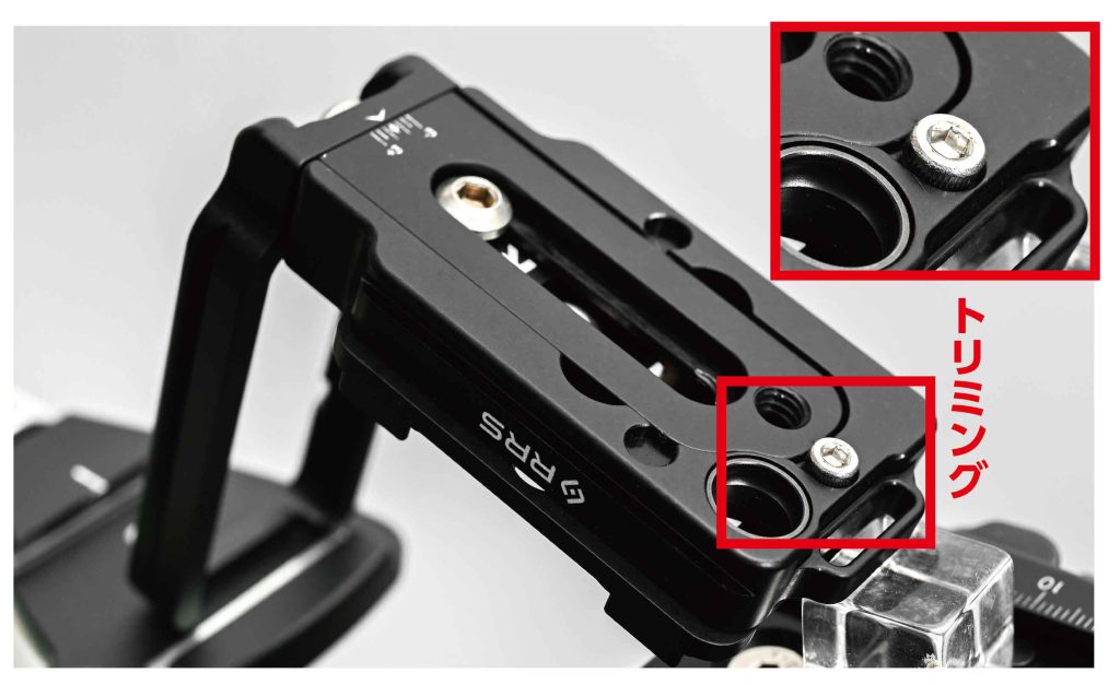 個人的にはこの小ネジを付けるとカメラを置きにくくなり、クランプ表面には浅い溝を設けなければならないため、この方式で滑落防止対策を施すのは反対です。すべての滑落防止機能がRRS-Lockのようにスマートなシステムになれば良いのになぁと思います。
